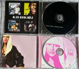 Nicki Minaj lote 4 cds incluye: - cd Barbie’s back - cd Pink Friday Deluxe Edition (2010) incluye duos con Rihanna, Drake, Will I Am, Kanye West y Natasha Bedingfield - cd Pink Friday Roman Reloaded Deluxe Edition (2012) incluye duos con Cam’ron & Rick Ross, Lil Wayne, Chainz, Nas, Drake & Young Jeezy , Chris Brown, Beenie Man y Bobby V - cd The Pinkprint (2014) incluye duos con Ariana Grande, Beyonce, Drake, Lil Wayne, Chris Brown, Meek Mill, Lunchmoney Lewis y Skylar Grey, Missy Elliott cardi b eminen dua lipa