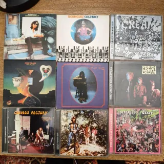 Vendo lote de 9 CDs imprescindibles de folk, y rock clásico. Incluye: Rodriguez – Cold Fact Rodriguez – Coming From Reality Nick Drake – Pink Moon Nick Drake – Bryter Layter Cream – Fresh Cream (The Cream Remasters) Cream – Disraeli Gears (The Cream Remasters) Cream – Wheels of Fire (The Cream Remasters) Creedence Clearwater Revival – Cosmo’s Factory Creedence Clearwater Revival – recopilatorio / edición Fantasy Estado: muy bueno. CDs y cajas originales. 📦 Venta solo en lote, no separo.