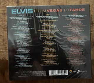 Elvis Presley, "Elvis From Vegas To Tahoe." 3 CDs box precintado (Follow That Dream Records) 58 tracks - 6 panel digipac Released as a 3-CD 5” digi-pak, this set features three 1973 midnight shows recorded on January 27 / February 21 (Las Vegas Hilton) and May 12 (High Sierra Theatre, Sahara Hotel, Lake Tahoe).