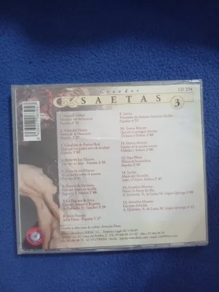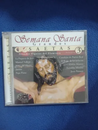 CD de música flamenca. - Semana Santa Grandes Saetas Volumen 3. - Grandes Figuras del Flamenco. - Incluye temas de La Paquera de Jerez, Manuel Vallejo, Niño del Museo, Jarrito, Pepe Pinto, Canalejas de Puerto Real, El Rerre de los Palacios, Gracia Montes, Antoñita Moreno y Jesús Perosán. - Colección Primer Época 1930-50.