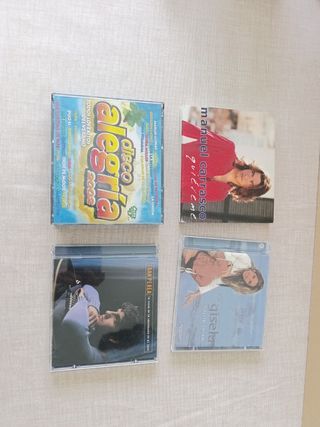 Vendo cuatro CDs de música latina en buen estado. Incluyen: - Alegría 2008 (Disco Alegría) - Gisela (Parte de mí) - Manuel Carrasco (Qué me quieres, qué te quiero) - Fran perea. La chica de la habitación de al lado
