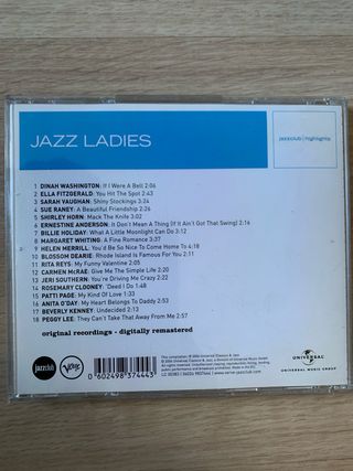 Compilación de grandes voces del jazz. - Jazz Ladies con Jazzclub Highlights. - Incluye a Ella Fitzgerald, Dinah Washington, Billie Holiday y otras artistas.
