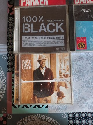 Louis Armstrong, B.B. King, Charlie Parker, Chet Baker, Nat King Cole, Billie Holiday y CD 100% Black volumen 4