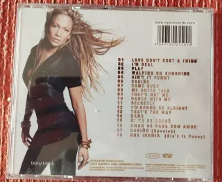 CD de Jennifer Lopez, álbum J-Lo. - Love Don't Cost a Thing - I'm Real - Play - Walking on Sunshine - Ain't It Funny - Carino - Come Over - We Gotta Talk - That's Not Me - Dance With Me - Secretly - I'm Gonna Be Alright - That's The Way - Dame (Touch Me) - Bi Ya Be Adand - Amor Se Paga Con Amor - Cariño (Spanish) - Que Ironia (Ain's is Funny)