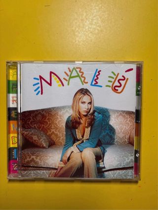 CD de la artista Malú. - Portada con diseño colorido. - Fotografía de la artista sentada en un sofá.