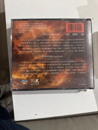 Este es el álbum doble HIStory: Past, Present and Future, Book I de Michael Jackson. - Incluye 150 minutos de música. - Contiene 15 grandes éxitos remasterizados. - Presenta 15 canciones nuevas. - Incluye Scream (a dúo con Janet Jackson). - Incluye Childhood (tema de Free Willy 2). - Viene con un folleto a color de 52 páginas sobre la historia.