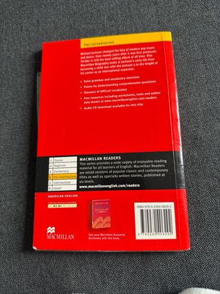 Biografía de Michael Jackson, The King of Pop, por Carl W Hart. Edición de Macmillan Readers. - Incluye CD de audio con ejercicios adicionales. Libro en inglés Michael Jackson: The King of Pop de Carl W. Hart. Colección Macmillan Readers. 📚 Lectura adaptada para estudiantes de inglés (nivel pre-intermediate). ✔ Biografía de Michael Jackson ✔ Incluye ejercicios de comprensión ✔ Buen estado Ideal para practicar inglés o para fans de Michael Jackson. Entrega en mano o envío por Wallapop. michael jackson book macmillan readers libro ingles lectura ingles biografia michael jackson english reader