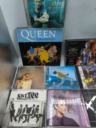 Colección de CDs de música y DVDs de conciertos en buen estado. DESTACADOS: Michael Jackson HIStory (Edición doble con libro), The Beatles 1, Queen Live Magic, Kool & The Gang Gold Collection. COLECCIÓN LIVE & UNPLUGGED: Alejandro Sanz MTV, The Corrs, Los Secretos, Mike Oldfield, Phil Collins, Elton John, Pretenders, Simply Red. CONCIERTOS EN DVD: Toto Live in Amsterdam, Eric Clapton Crossroads, Phil Collins Farewell Tour. ROCK Y POP CLÁSICO: Supertramp, Van Morrison, Genesis, Enya, Bee Gees, Alan Parsons Project. SOUL Y JAZZ: Marvin Gaye, Stevie Wonder, Diana Ross, Michael Franks. Se hacen envíos. Venta por lote completo o pack