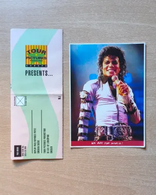 Se vende fotografía de Michael Jackson durante el DANGEROUS World Tour, de la empresa Tour Pictures Production. Esta era una empresa donde tú enviabas una solicitud para conseguir las fotografías de tu artista favorito. También se incluye una postal del Bad Tour. Se envía protegido. Están en buen estado. King of pop rey del pop single CD Vinyl magazine revista book libro sencillo DVD VHS beta thriller Bad History collector collection