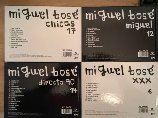 Conjunto de 4 CD-libros del artista Miguel Bosé. - Miguel Bosé: Chicas - Miguel Bosé: Miguel - Miguel Bosé: Directo 90 - Miguel Bosé: XXX Cada CD-libro incluye además del álbum, una extensa explicación de cada etapa creativa así como múltiples fotografías del artista.