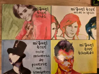 Conjunto de 4 CD-libros del artista Miguel Bosé. - Linda - Made in Spain - Once maneras de ponerse un sombrero - Bandido Cada CD-libro incluye además del álbum, una extensa explicación de cada etapa creativa así como múltiples fotografías del artista.