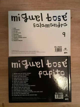 Pack de dos CD-libros de Miguel Bosé. - Salamandra. - Papito. Cada CD-libro incluye además del álbum, una extensa explicación de cada etapa creativa así como múltiples fotografías del artista.