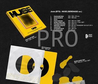Álbum MUSE "SERENADE VER" de Jimin, miembro de BTS. - Portada amarilla de MUSE. - Incluye todo lo que se ve en las imágenes. (No incluye photocard/postcard) - Los bordes vinieron doblados desde el principio.