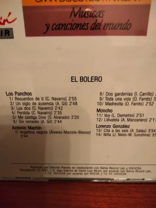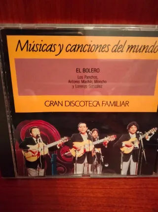 Este CD recopila El Bolero de Músicas y canciones del mundo. - Incluye interpretaciones de Los Panchos, Antonio Machín, Moncho y Lorenzo González. - Formato: CD. - Colección: Gran Discoteca Familiar.