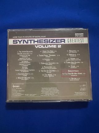 CD de música sithesizer electrónica, en buen estado. - Incluye temas como "I'll Find My Way Home". - Más de 70 minutos de música digital. - Álbum recopilatorio.