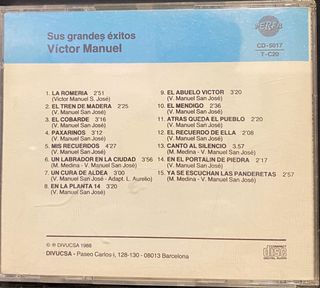Este CD recopila los grandes éxitos de Victor Manuel. - Incluye canciones como La Romería, El Abuelo Vitor y El Mendigo. - Género musical: Latino.