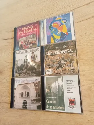 Lote de 6 CDs de música con diferentes temáticas. - Niños de Huelva - Felices Pascuas - Cantándole a la Navidad - Himno de El Borge - Por San Francisco - Canciones de un Monasterio (Sor Clara Mariela) - CD con portada abstracta (Yo te canto así)