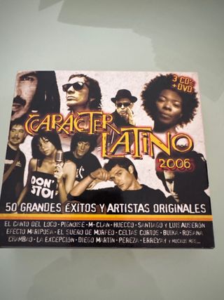Compilación musical Carácter Latino 2006 que incluye 3 CDs y 1 DVD. - 50 Grandes Éxitos y Artistas Originales. - Incluye artistas como El Canto del Loco, Pignoise, M-Clan, Huecco, Santiago y Luis Auserón, Efecto Mariposa, El Sueño de Morfeo, Celtas Cortos, Buika, Rosana, Chambao, La Excepción, Diego Martín, Pereza, Erreway y muchos más.