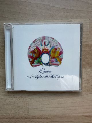 CD del álbum A Night At The Opera de Queen. - Portada icónica con el logo de la banda. - Género: Pop/Rock internacional.
