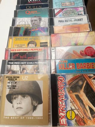 Lote de CDs de música variada, incluyendo rock y pop. 22 Cds. - Queen: Greatest Hits, The Miracle - U2: The Best of 1980-1990 - Rage Against the Machine - Red Hot Chili Peppers: One Hot Minute - Stone Temple Pilots - Full Metal Jacket Soundtrack - The Killer Barbies - Extremoduro - Varios artistas (compilaciones)