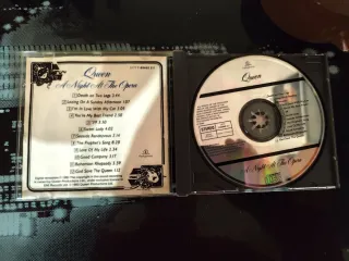 CD del álbum A Night At The Opera de Queen. - Incluye el icónico logo de Queen. - Portada del álbum A Night At The Opera.