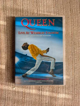Vendo DVD original del mítico concierto de Queen en el Wembley Stadium, una de las actuaciones más legendarias de la historia del rock. 📀 Edición 25º Aniversario con extras exclusivos, que incluyen: ✔️ The Final Tour (con entrevistas nuevas a Brian May y Roger Taylor) ✔️ Wembley Weekend Rehearsal ✔️ Material adicional imprescindible para fans y coleccionistas 📦 DVD en buen estado, con su caja original. 💿 Disco bien conservado y funcionando correctamente. ✨ Ideal para coleccionistas, fans de Freddie Mercury y amantes del rock clásico.