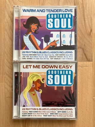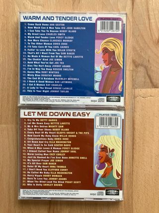 Lote de dos CDs de música Southern Soul y R&B. - Warm and Tender Love - Let Me Down Easy Ambos discos incluyen 22 clásicos del Rhythm & Blues.