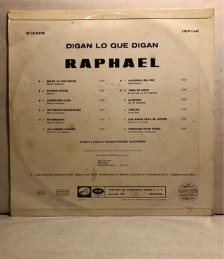 Disco de vinilo del artista Raphael. - Título: Volveré a Nacer. - Género: Pop Rock Nacional. Tocadiscos, disco, vinilo, cadena, música, equipo, pletina, radio, casette, cd, dvd, blueray, reproductor