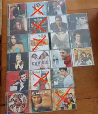 Colección de 20 CDs en buen estado. Milenials nostálgicos de los años 2000 El precio es 5€ por unidad. El pack de los 20 por 45€. - Víctor Rock&Swing (Operación Triunfo) - Malú - David Bisbal (Operación Triunfo) - Rosa Ahora(Operación Triunfo) - Rosa Me siento viva (Operación Triunfo) - Tamara Roberto Carlos - David Bustamante (Operación Triunfo) - Daniel Zueras Siempre sale el sol - Marta Sánchez Soy yo - Camela - Enrique Iglesias 7 - Enrique Iglesias 95/08 - Fórmula Abierta (Operación Triunfo) - Michael Bublé To be loved - Eurojunior - el Arrebato