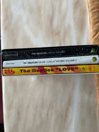 Caja the Beatles con tres álbumes en edición de lujo limitada. *CDx2 live at the bbc *CDx2 on air-live at the bbc vol.2 *CD LOVE Se encuentra en perfecto estado,muy bien cuidados...lo único es que la caja a cogido algo de color amarillo por el tiempo