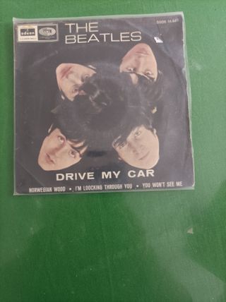 Single de vinilo de The Beatles. - Cara A: Drive My Car - Cara B: Norwegian Wood, I'm Loocking Through You, You Won't See Me - Sello Odeon / EMI - Referencia DSOE 16.689