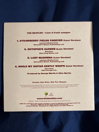Sampler promocional de The Beatles con el álbum Love. - Incluye 4 pistas. - Diseño distintivo con siluetas de la banda.
