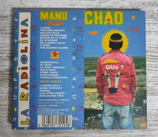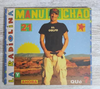 CD del álbum La Radiolina de Manu Chao. - Incluye el tema El Golfo. - Portada con paisaje desértico y sol. - Diseño con elementos gráficos distintivos.
