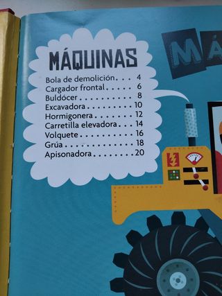 Libro con piezas para construir maquinas de obra..trae un tablero para ir construyendo