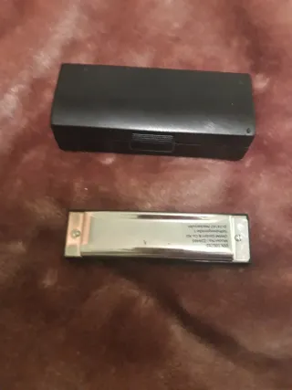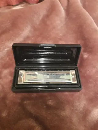 La cambio por cejilla/cejuela de guitarra clasica. Armónica plateada con su estuche negro. - Diseño compacto y portátil. - Incluye estuche para guardarla.