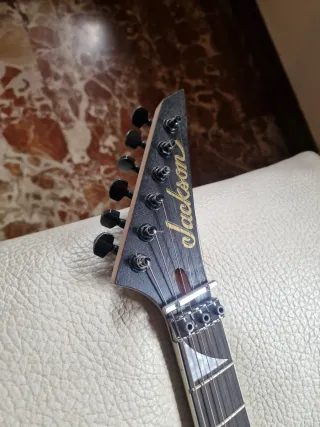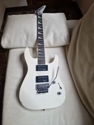 Guitarra eléctrica Jackson JS12 con muchas modificaciones. Las modificaciones las hice yo aprendiendo, la guitarra necesitaría un paso por el luthier sobretodo para instalar correctamente la cejilla y ajustar la acción de la guitarra y su entonación. - Color blanco. - Pastillas humbucker Jackson - Puente Schaller Floyd Rose - Mástil modificado con marcadores Shakira y logotipo Jackson dorado.
