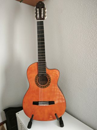 Vendo o cambio guitarra clásica Valencia modelo CG160CE/NA con cutaway. Ecualización y afinador incluidos. Sonido cálido y potente. Tiene algún picotazo y signos de uso (últimas fotos), por eso el precio. Suena perfectamente tanto en acústico como enchufada. Regalo funda y cejilla. También cambio por guitarra eléctrica.