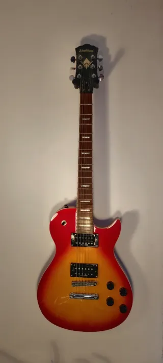 Guitarra eléctrica Washburn WIN-STD Idol con acabado Tobacco Sunburst. Usada, pero ha sido cuidada y funciona perfectamente, solo tiene algún toque y rayón en el barniz y descoloramiento. - Cuerpo y mastil de caoba. - Diapasón de 22 trastes de palisandro. - Pastillas humbucker Duncan USM con control de volumen y potencia. -Incluyo correa, cable, cejilla, slide de plástico, afinador y pasta abrillantadora. Solo atiendo y gestiono a través de wallapop, ni WhatsApp ni email.