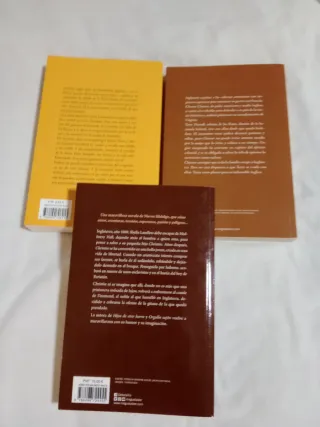 Este lote está compuesto de cuatro libros, diferente temática y formato. El que está abierto es debido a la pérdida de sobrecubierta, aunque el libro está como nuevo, al igual que los otros tres. Imposible reseñar los todos en este espacio. Sólo diré que son cuatro historias atrapantes, cada una en su género.