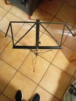Atril negro, ideal para quienes se inician en la música. Es plegable y fácil de transportar. Se incluye funda. - Estructura metálica. - Soporte ajustable.