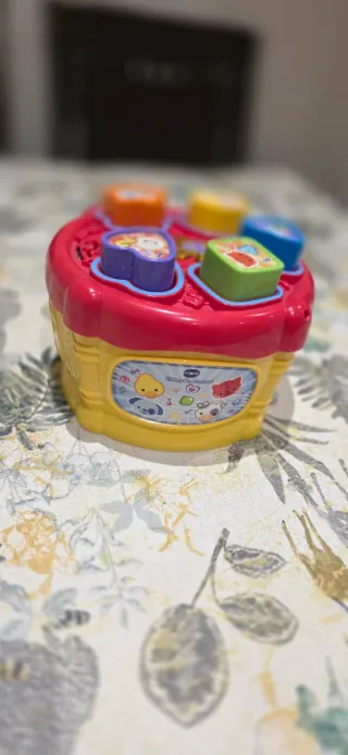 Tambor musical interactivo para bebés de la marca VTech. Ideal para el aprendizaje temprano. - Colores vivos: amarillo y rojo. - Formas para encajar. - Sonidos y luces. - Diseñado para manos pequeñas.