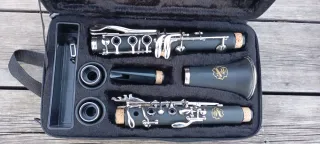 Clarinete Yamaha 255 listo para tocar. LLaves, columnas y zapatillas funcionando bien, rectas y sin fugas. Ideal para estudiantes por su robusta construcción y afinación calidad Yamaha. Incluyo además todo lo necesario para empezar a tocar ya: - Boquilla Yamaha 4C y ligadura, en perfecto estado ambas. - 5 cañas Vandoren (de 3 y de 2 1/2) - Gamuza original Yamaha -Estuche Yamaha original - Soporte de suelo - Correa de cuello de piel - Libro Aprende con el clarinete (Juan José Bou) - Atril de desfile nuevo - Grasa para corcho
