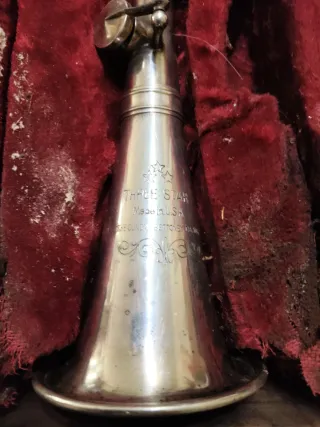 Clarinete Three Star fabricado en EE. UU. por Cundy Bettoney.Sonidazo de 3 estrellas ,en insuperable estado,de plata con zapatillas nuevas y AJUSTADO perfecto - Cuerpo metálico plateado. - Grabado THREE STAR y Made in U.S.A.. - Detalle ornamental grabado.