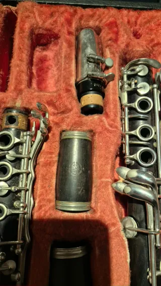✨ Clarinete Selmer Recital en Si♭ – Buen estado + piezas artesanales únicas ✨ Un instrumento pensado para clarinetistas exigentes que buscan afinación estable, sonoridad profunda, proyección equilibrada y una respuesta excepcional. Características destacadas: 🎼 Modelo: Selmer Recital en Si♭ 🔊 Sonido característico: Madera con mayor grosor que aporta un timbre cálido, denso y muy centrado. 🪵 Material: Granadilla seleccionada. 🎶 Uso: Utilizado durante los estudios superiores, con muy poco desgaste. 🛠️ Está para tocar, aunque se recomienda una puesta a punto por un Luthier. Campana y barriletes (granadilla y cocobolo) artesana