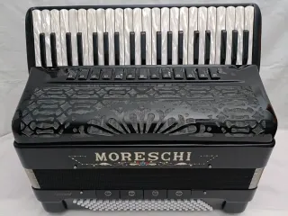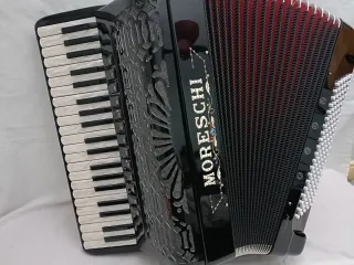 Vendo bonito acordeón italiano Moreschi, 4 y 5 voces, cassotto 2 + 2 (basson y clarinete en cassotto, afinación piccolo LMMH, 41 teclas, 120 bajos. Es casi nuevo, su estado es impecable. Esta afinado en 440 hz, con ligero tremolo. El teclado mide 48,5 cm, su peso es de 12,5 kilos. Tiene voces Voci Armoniche. Correas y maleta impecables. Escucho ofertas razonables, no cambio.