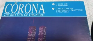Vinilo del éxito The rhythm of The night de CORONA. Un clásico de la música dance. - Edición en formato vinilo. - Ritmos electrónicos pegadizos.