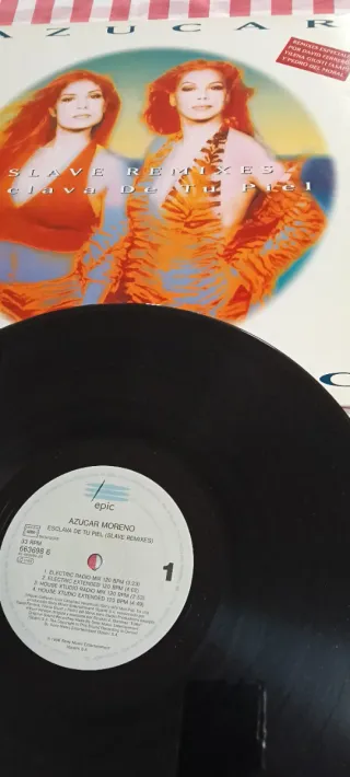 Vinilo del álbum Esclava de tu piel de Azúcar Moreno. Maxi Single 45 rpm - Incluye remixes especiales. - Formato LP.