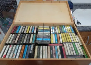 Colección de cassettes de música antiguos en buen estado. Tasadas por separado entre 900 y 1000 sumando todas. Hay de todos los géneros. Puedo enviar fotos de todos los cassettes por separado. Incluye entrada concierto antigua y la caja también tiene valor ya que es de una antigua empresa ferroviaria francesa. Se escuchan ofertas. - Caja de madera para su almacenamiento. - Incluye cintas de música de diferentes artistas.