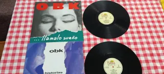 Lote de vinilos del grupo OBK. - Incluye los álbumes Historias de Amor y Llamalo Sueño. - Ideal para coleccionistas de pop español.