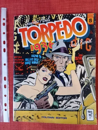 Pongo a la venta estos ejemplares icónicos de "Torpedo 1936", la cumbre del cómic noir español. Dibujo espectacular y guiones afilados. Son ediciones originales de Toutain Editor, difíciles de encontrar en este estado. El lote incluye: - Torpedo 1936 Tomo 2: Edición rústica. - Torpedo 1936 Tomo 5: Edición rústica. - Revista Torpedo Nº2: Incluye historias cortas y literatura negra.